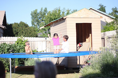 I had a blast on the trampoline. Wheezed like crazy after so that must mean it was a good time. My back has hurt ever since though. Getting old sucks. If I had a tramp I'd be on it every day. *That's what she said!* Yes I just went there. Tee hee. I've always loved them. Love doing back flips and belly flops and all sorts of tricks. I was also having great fun teaching the children how to do back flips.